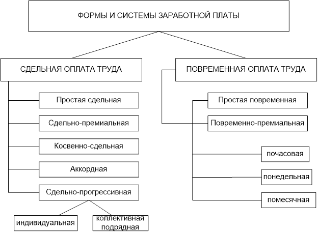 В современных условиях на предприятиях применяются различные формы и системы оплаты труда (рисунок), но наибольшее распространение получили две формы оплаты труда: повременная и сдельная.