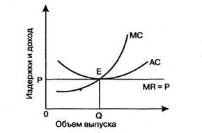 цена равна минимальным средним издержкам производства, что обеспечивает фирме самоокупаемость, т. е. фирма только покрывает свои издержки, что дает ей возможность получать нормальную прибыль;