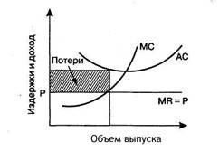 Поскольку на цену не влияет конкурентная фирма, то на свой доход она может повлиять лишь посредством изменения объема продаж. Если валовой доход фирмы больше совокупных издержек, то она получает прибыль. Если совокупные издержки превышают валовой доход, то фирма несет убытки.
