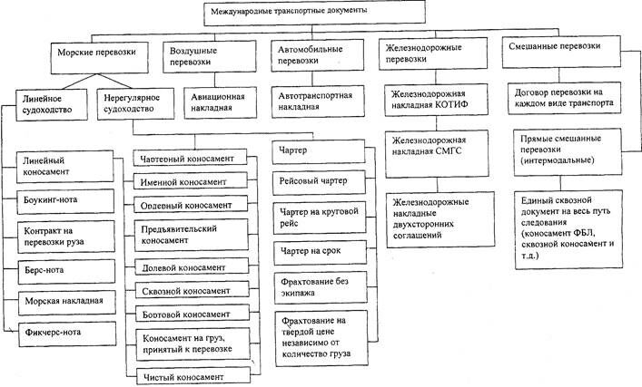 На схеме приведены основные виды международной транспортной документации.