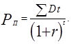 Пример: допустим, при проценте на депозитные вклады, равном 25 % годовых и при сумме дивиденда в 500 руб. : (500 / (1 + 0.25)) = 400 руб.