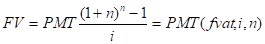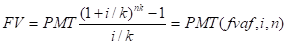 FV = PMT ((1 + i/k)^nk – 1)/(i/k)
