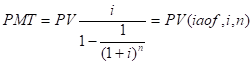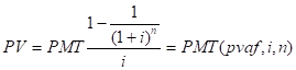 (1-1/(1+i)^n)/i – фактор текущей стоимости обычного аннуитета при платежах (поступлениях) в конце каждого года