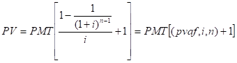 Расчет текущей стоимости авансового аннуитета. Базовые формулы: