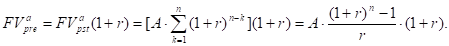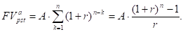 Прямая задача оценки срочного аннуитета при заданных величинах регулярного поступления (А) и процентной ставке (r) предполагает оценку будущей стоимости аннуитета.