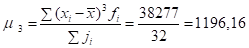 Согласно свойству средней арифметической центральный момент первого порядка равен нулю, второй центральный момент представляет собой дисперсию. Величина третьего момента зависит, как и его знак, от преобладания положительных отклонений в кубе над отрицательными либо наоборот.