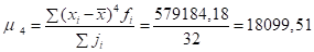 При нормальном распределении и любом другом строго симметричном распределении сумма положительных отклонений в кубе строго равна сумме отрицательных отклонений в кубе (µ3 используется при оценке ассиметрии). Четвертый момент используется при оценке эксцесса.