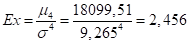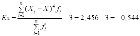Для определения крутизны графика (заостренности) вычисляют центральный момент четвертого порядка. С помощью момента четвертого порядка характеризуется свойство рядов распределения, называемое эксцессом. Рассчитывается по формуле: