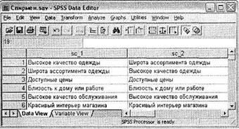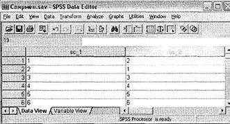 В окне SPSS Viewer появится таблица Correlations с результатами расчета коэффициента ранговой корреляции (Спирмана) по двум анализируемым переменным. Как следует из рис. 4.22, две рассматриваемые схемы выбора различаются несущественно. Данный вывод можно сделать из сильной корреляции между переменными sc_l и sc_2 (коэффициент корреляции Спирмана = 0,9), характеризующейся весьма высокой статистической значимостью (0,005).