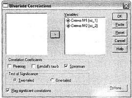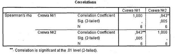 Для этого снова откройте диалоговое окно Bi variate Correlations, выбрав пункт меню Analyze ► Correlate ► Bivariate. Перенесите две интересующие нас переменные — Схема №1 (составленная по вопросу 1) и Схема №2 (составленная по вопросу 2) — из левого списка всех доступных переменных в область Variables (рис. 4.21). Отмените вывод корреляции Пирсона и вместо него выберите параметр Spearman (корреляция Спирмана). После этого начните расчет при помощи щелчка на кнопке ОК.