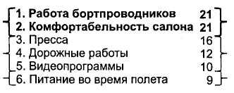 Данный рейтинг также можно интерпретировать и как рейтинг значимости для респондентов различных параметров сервиса на борту (в общем случае — схема выбора). Так, наиболее важными факторами являются первые два (1-2); среднюю значимость для пассажиров имеют следующие три параметра (3-5); относительно малое значение имеют последние два фактора (6-7).