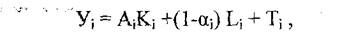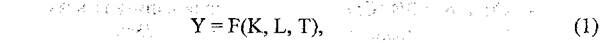 где Y - уровень реального дохода или продукта; К - основной капитал, который рассматривается здесь как природный капитал (земля и другие природные ресурсы); общественный (инфраструктура); частный (инвестиции); социальный; L - труд (рабочая сила); Т - технологии, уровень которых различен в разных сообществах.