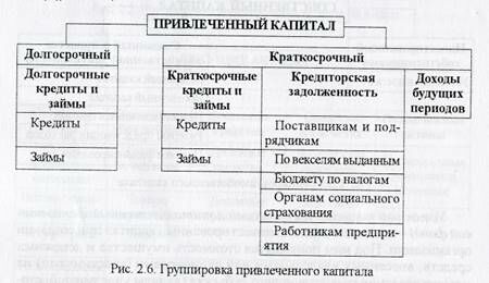 При недостаточности собственных источников формирования активов организации привлекают капитал со стороны (привлеченный капитал) (рис. 2.6).