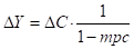 в функцию национального дохода Y= С + I + G, получим: Y = С + mрc (Y – Т) + I + G, откуда