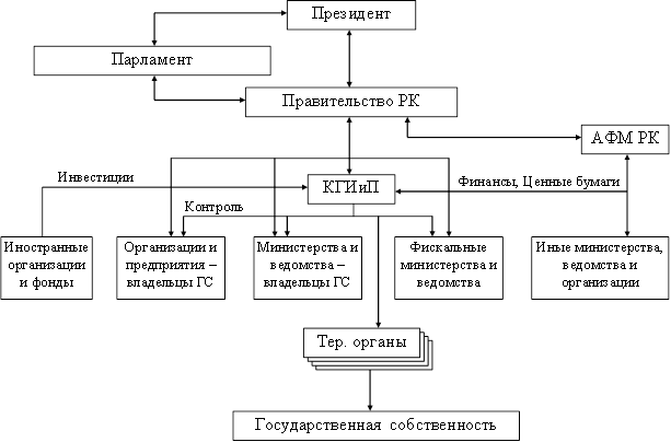 Повышение эффективности управления государственной собственностью требует обоснования системы участия органов государственного управления в этом процессе. Особую роль в этой системе должно играть КГИиП РК, которое специализируется на решении задач управления государственной собственностью и поэтому должно быть наделено властными полномочиями, достаточными для выполнения своих основных функций.