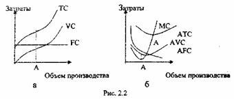 Наиболее полно данный подход описан в работах Р. Макконнелла и С. Брю, С. Фишера и Р. Дорнбуша и других. Приверженцы данной теории рассматривают поведение затрат по отношению к объему производства с учетом всех факторов, в отличии от линейной модели, которая здесь считается примитивной. Рассмотрим главные особенности данного подхода на примере рис. 2.2а. характеризующего поведение совокупных затрат, и рис. 2.26, характеризующего поведение средних затрат (затрат на единицу продукции) и предельных затрат.