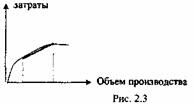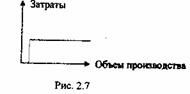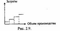 Ступенчато (дискретно) возрастающие затраты. Часто возникает ситуация, при которой затраты являются постоянными для конкретного объема производства, но случается так, что в какой-то критический момент они начинают возрастать на определенную постоянную величину (рис. 2.9).