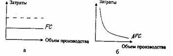 Постоянные затраты. Графическое изображение линейной функции Y = а, где а - постоянные затраты предприятия, представлено на рис. 2.6а, поведение постоянных затрат на единицу выпускаемой продукции показано на рис. 2.66.