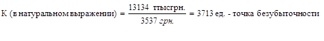 Таблица 4 - Расчет точки безубыточности в натуральном и стоимостном