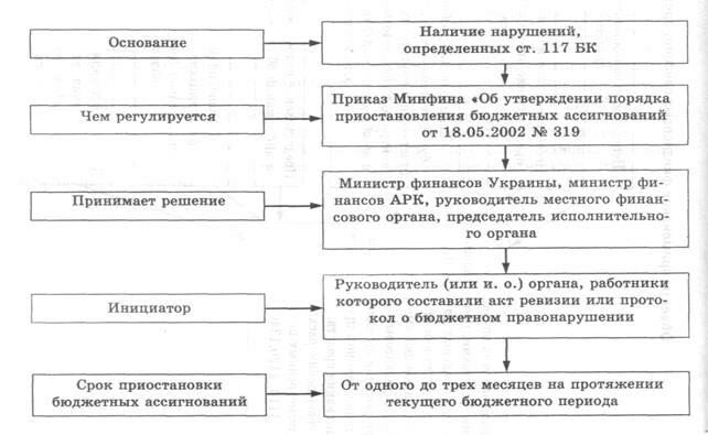 Рис. 9.3. Механизм приостановки бюджетных ассигнований за бюджетные правонарушения, которые определены ст. 117 Бюджетного кодекса.