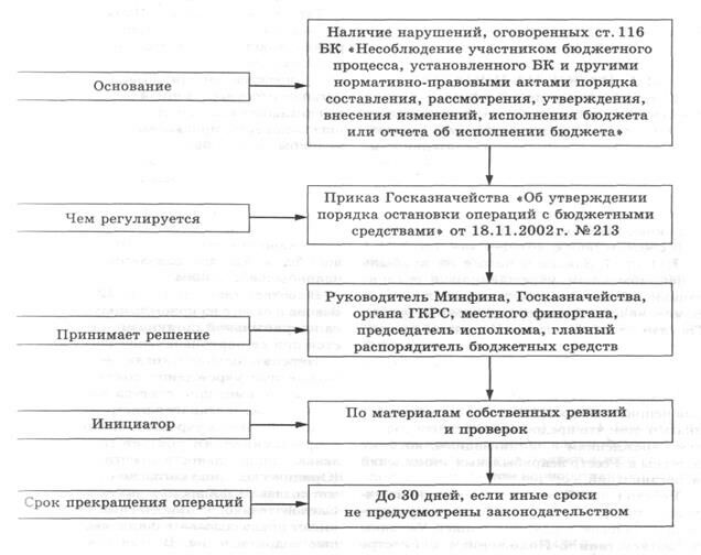 Рис. 9.4. Механизм применения остановки операций с бюджетными средствами (данная финансовая санкция может быть применена к любому бюджетному правонарушению).