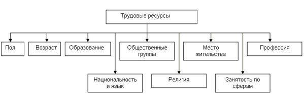 Структура трудовых ресурсов многогранна. Она включает различные компоненты, характеризующие те или иные стороны трудовых ресурсов. Ее составляющие: