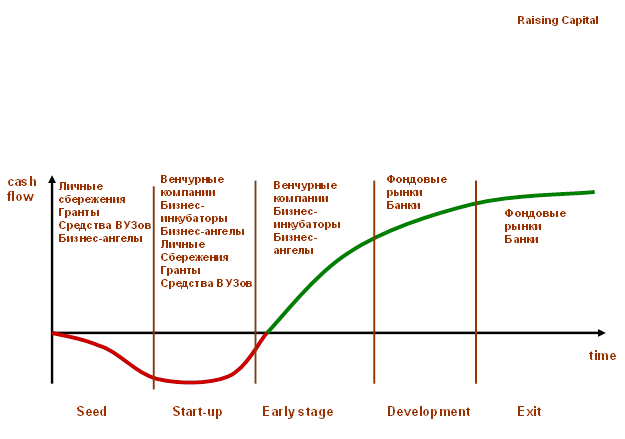 В большинстве своем, фирмы венчурного капитала вступают в игру, когда рабочий прототип продукта создан и испытан на рынке, и нужны средства для его коммерческого производства и маркетинга.
