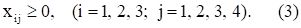 Так как исключаются обратные перевозки груза, то переменные удовлетворяют условию неотрицательности: