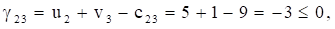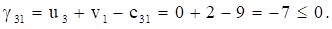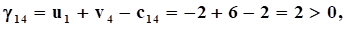 Проверяем опорный план на оптимальность по свободным клеткам, определяя, выполняется ли соотношение