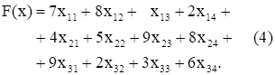 - количество единиц сырья, перевозимого из i-ой оптовой базы к j-ому потребителю.