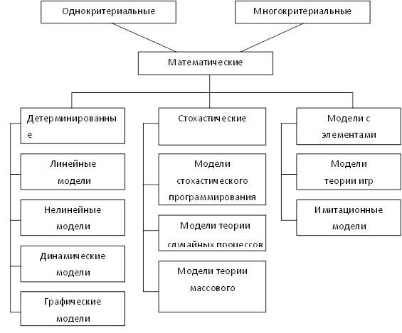 По числу критериев эффективности математические модели делятся на однокритериальные и многокритериальные (рис. 1). Многокритериальные матема-тические модели содержат два и более критерия.