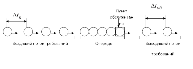 Системы массового обслуживания (СМО) в общем виде можно представить как совокупность последовательно связанных между собой входящих потоков требований на обслуживание, очередей, каналов обслуживания и выходящих потоков требований.