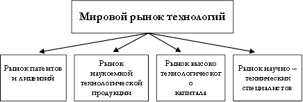 • мировой рынок технологий имеет специфическую нормативно-правовую базу своего функционирования в виде Международного кодекса поведения в области передачи технологий (Женева, ЮНКТАД, 1979) и международные органы (организации) регулирования: Комитет ЮНКТАД по передаче технологий, Совещание специалистов по безопасности и технологии (СТЕМ).