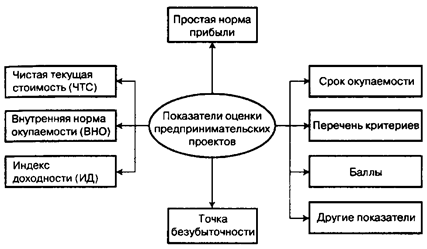 Финансовая оценка предпринимательского проекта и его вариантов осуществляется также с помощью системы показателей (рисунок 13.2).