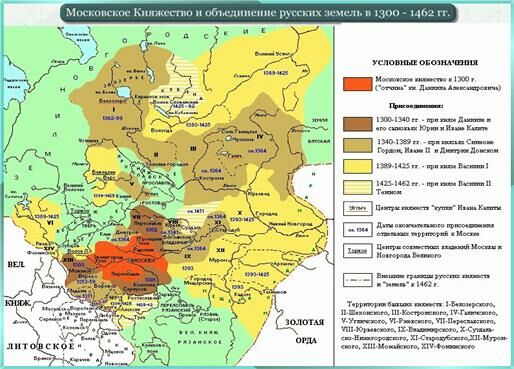 Княжение сына Василия Темного Ивана III (1462-1505 гг.) стало важнейшим этапом в процессе создания единого Российского государства. Это было время образования основной территории России, формирования её политических основ. Иван III был крупнейшим государственным деятелем, человеком больших политических замыслов и решительных начинаний. Умный, дальновидный, расчётливый и настойчивый, он был достойным продолжателем дела своего отца.
