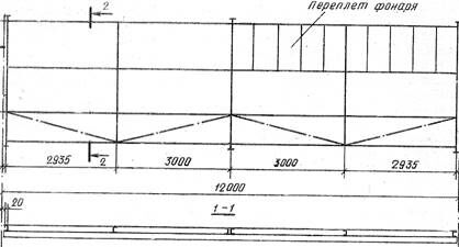 Рис. 7. Схема разреза по аэрационному фонарю шириной 12 м