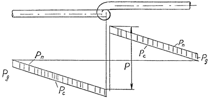 Рис.6.1 Эпюры давлений в простейшей вентиляционной сети