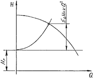 Теперь уже эту параболу надо совместить с характеристикой насоса для определения рабочей точки (рис. 6.4).