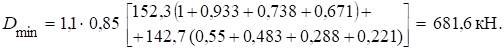 Fk2,min = Fk,min(Fk2,max/Fk,mak) = 147,5 (480 / 465) = 152,3 кН.