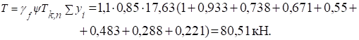 Tk,n = β(Q + GT)/nо = 0,05 (1000 + 410) / 4 = 17,63 кН,