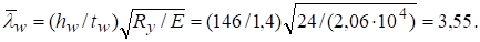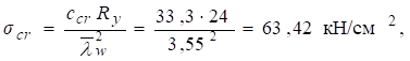 где ccr = 84,7 – коэффициент, определяемый в зависимости от a/hw = 2,05 (см. табл. 3.16).
