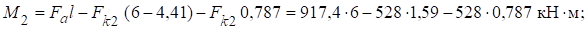 Вычисляем величины моментов и поперечных сил на границах расчетного участка (х1 = 4,54 м; х2 = 6 м):