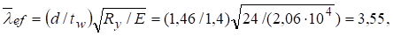 ρ = 1,04lef /hw = 1,04 ∙ 49,1 / 146 = 0,35 (здесь lef = 49,1 см – условная длина распределения сосредоточенной нагрузки от колеса);
