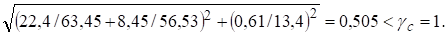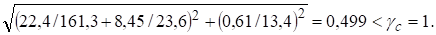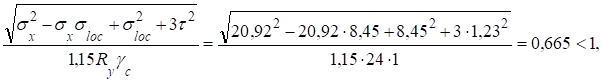 Проверяем стенку сварной балки на совместные действия всех напряжений на уровне верхних поясных швов по формуле