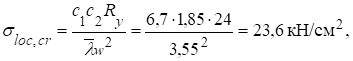 Расчет на устойчивость стенки балки симметричного сечения, укрепленной только поперечными основными ребрами жесткости, при наличии местного напряжения смятия (σloc ≠ 0) и условной гибкости стенки