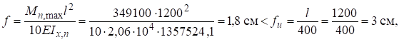 Жесткость балки обеспечена. Ее можно было не проверять, так как принятая высота балки hб > hmin.