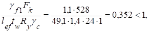 Проверка общей устойчивости подкрановой балки не требуется, так как ее верхний сжатый пояс закреплен по всей длине тормозной конструкцией.