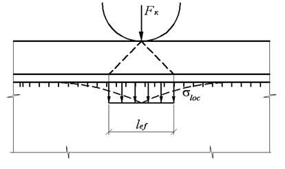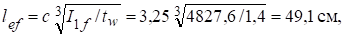 lef – условная расчетная длина распределения сосредоточенной нагрузки Fk , зависящая от жесткости пояса с рельсом и сопряжения пояса со стенкой: