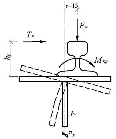 здесь е = 15 мм – условный эксцентриситет рельса, равный допустимому смещению рельса относительно оси подкрановой балки;