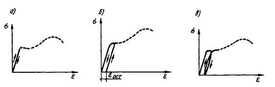 а – в пределах упругих деформаций; б – с перерывом (после «отдыха»);